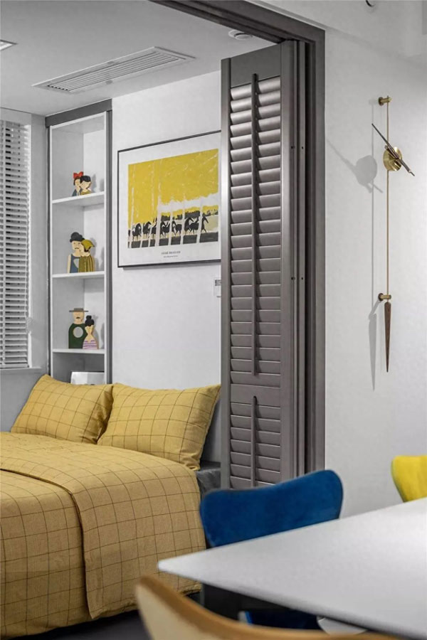 ▲选择了折叠门作为卧室的门,这样可以在需要的时候方便地将门折叠起来,节省空间的同时也增加了整个房子的美观度。